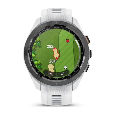 Garmin Approach S70, 42 mm, Black/Peach Ceramic Bezel with White Silicone Band