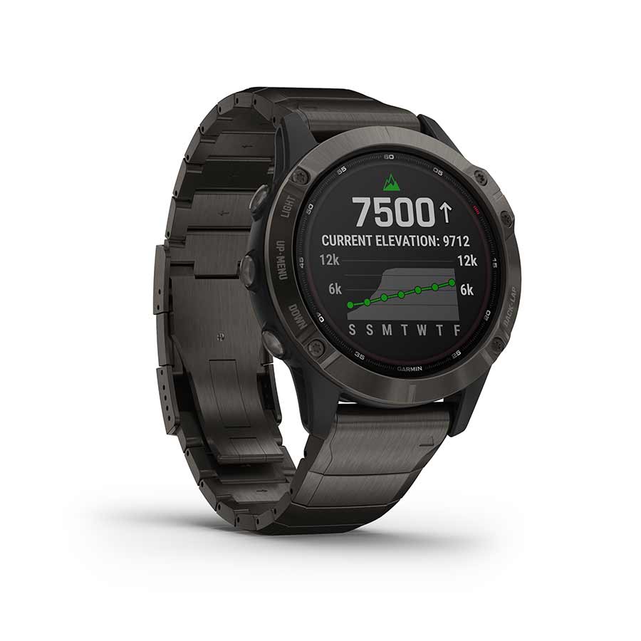 Solar powered multisport GPS watch uses a Power Glass solar charging lens and custom power manager modes to achieve long-lasting battery life. Train with a rugged yet sophisticated watch, featuring an always-on 1.3'' display and a titanium, stainless steel or DLC coated bezel. Track surfing sessions with a new dedicated activity profile, and even use SurflineSessions, which creates a video of every wave you ride in front of a Surfline camera. Upgraded activity profiles now let you track more, such as specialized Grit and Flow measurements while mountain biking. Get improved performance data to help you endure tough challenges, including the acclimation 2.0 widget to analyze additional data and see how your body is holding up to the elevation. Navigate with preloaded TOPO maps, ski maps for over 2,000 worldwide ski resorts, multiple global navigation satellite system (GPS, GLONASS and Galileo) support and built-in sensors for 3-axis compass, gyroscope and barometric altimeter.