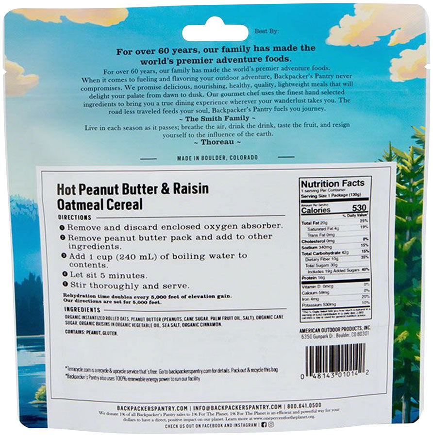 Backpacker's Pantry Organic Peanut Butter and Raisin Oatmeal Hot Cereal 1