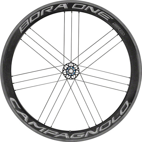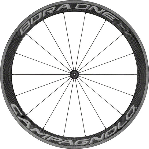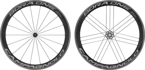 50mm deep full carbon rim, specifically designed for 25c and 28c clincher tires. Wider 24.2mm rim increases wheel stiffness, reactivity, and aerodynamics. New AC3 (All Conditions Carbon Control) brake track further improves braking in dry and wet conditions versus previous Bora wheels. G3 Spoke pattern reduces stress and increasing rigidity. USB ceramic bearings. Dark labels. 1485 grams per pair.