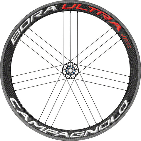 50mm deep full carbon rim, specifically designed for 25c and 28c clincher tires. Wider 24.2mm rim increases wheel stiffness, reactivity, and aerodynamics. New AC3 (All Conditions Carbon Control) brake track further improves braking in dry and wet conditions versus previous Bora wheels. G3 Spoke pattern reduces stress and increasing rigidity. CULT ceramic bearings for the ultimate smoothness. Bright labels. 1435 grams per pair.